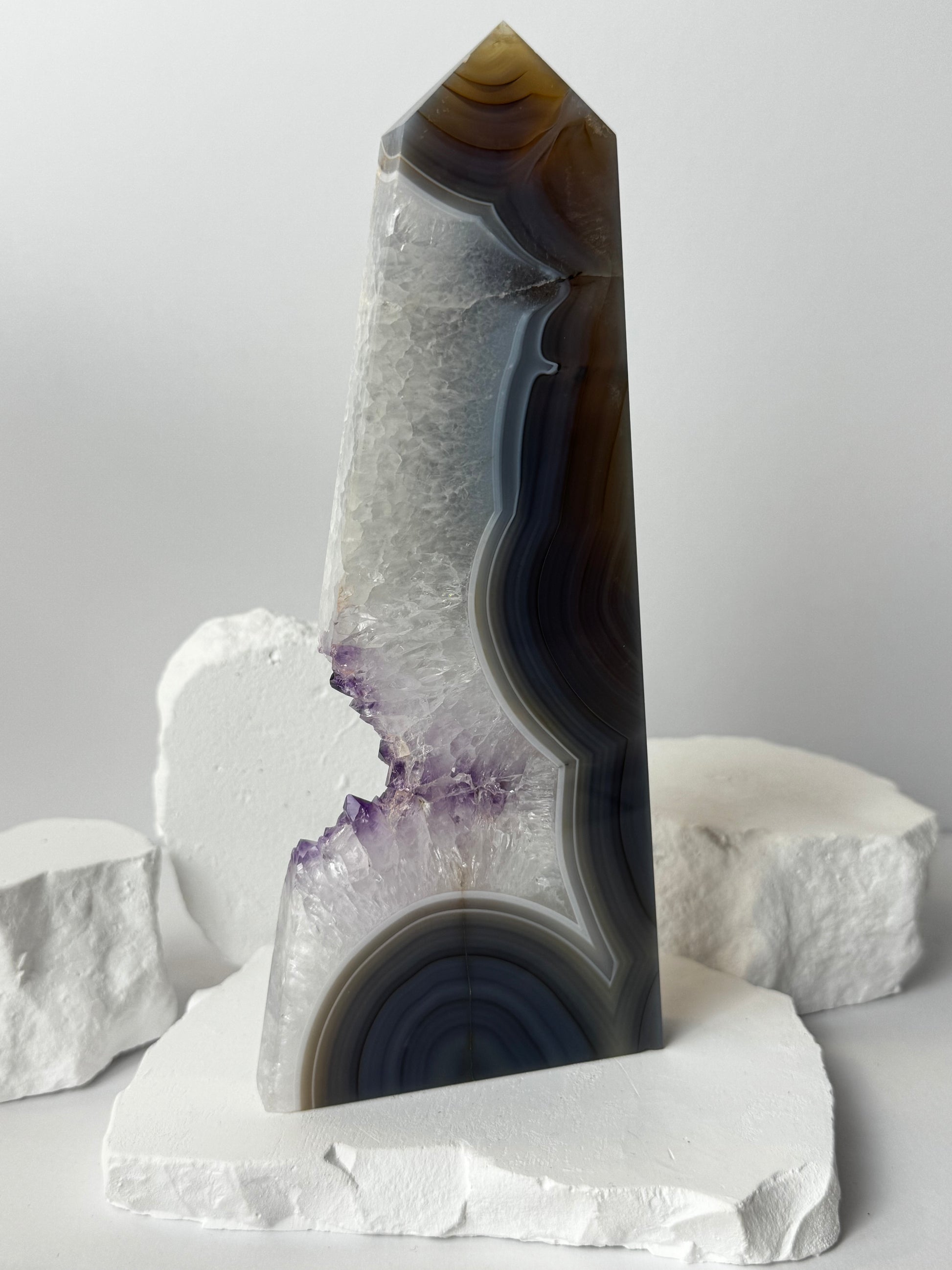 Druzy Achat Turm mit Amethyst